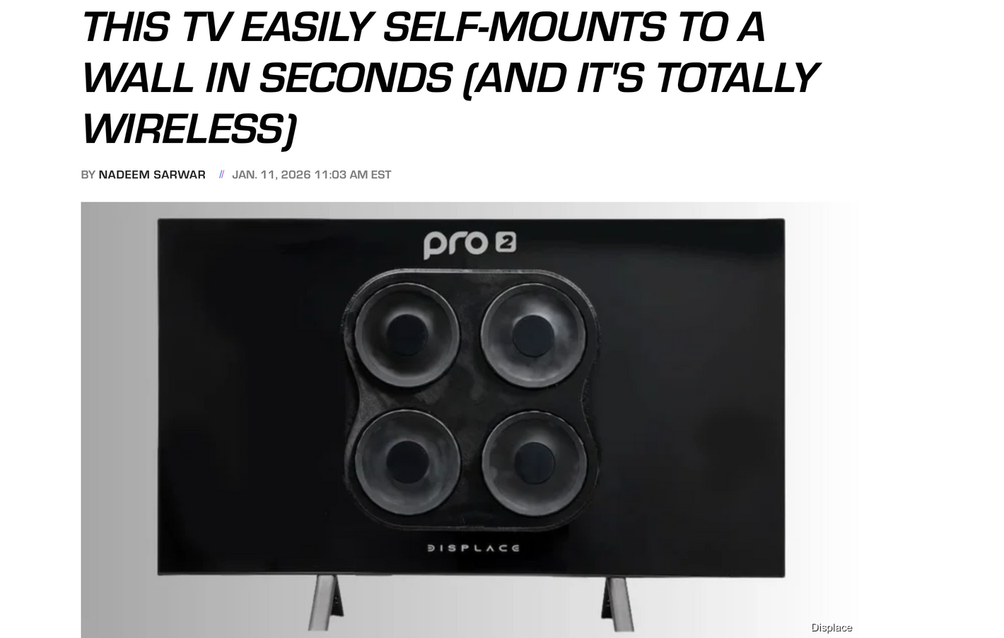 Displace TV Unveils AI-Powered Wireless TV and Smart Hub Wall Mount Ahead of CES 2026